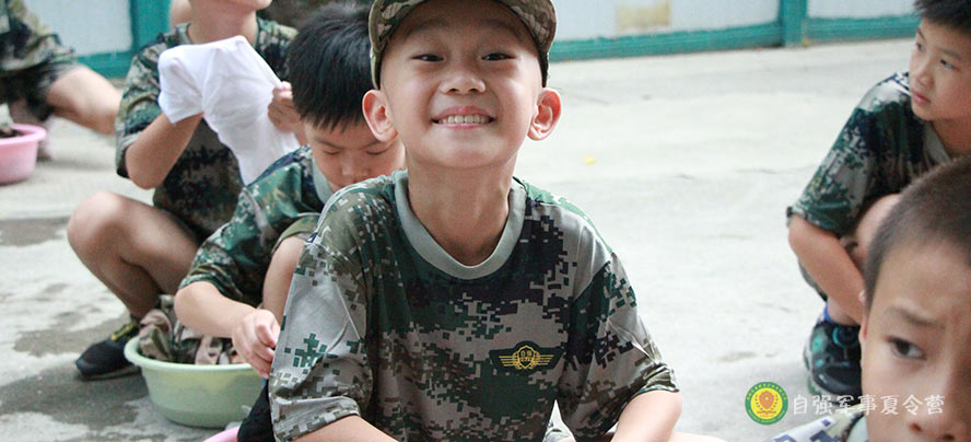在自强军事夏令营,小朋友们学会了自理、自力、自强。